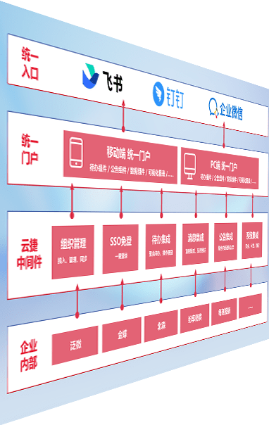对协作平台提供支持服务,,,,支持企业应用与协作平台对接,,包含组织同步、、、消息集成、、、、待办集成等。。支持目前主流的协作平台:钉钉、、、、企微和飞书。。。
